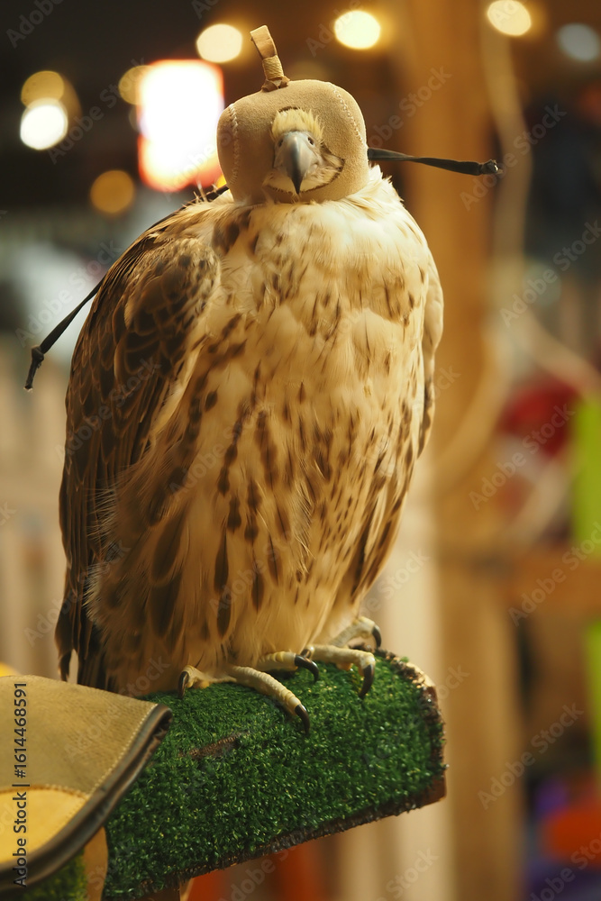 Falcon ready for training at a traditional falconry site