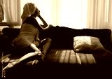 Girl resting and laying in cozy sofa bed in the luxury bedroom an easy morning. Attractive sexy woman relaxing wearing bathrobes and towels in hotel room. Lovely tenderness girlgriend
