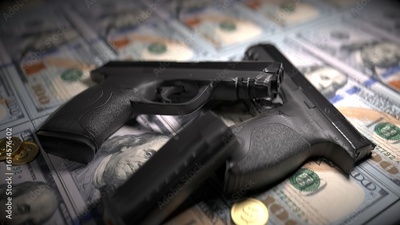 Handgun on Money – 3D Render of Criminal Underworld, Mafia Concept