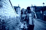 Happy woman using smart phone with her boyfriend at open music festival in summer.