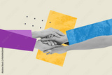 Creative pop poster sketch art collage of hands hold together high five support unity cooperation colleagues company development