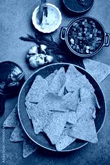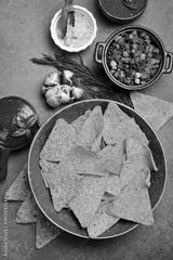 Crispy nachos chips with paprika in a bowl. Salty Mexican snacks.
