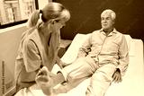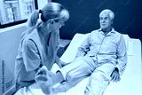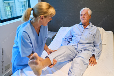 Healthcare worker assisting senior man during rehabilitation session at a care facility