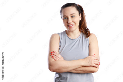 Confident smiling young woman with crossed hands