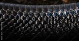 Snake scale pattern. Black snake scales. Close-up of snakeskin scales. Scaly snake skin. Exotic reptilian pattern. Leathery snake texture. Snakes scales detailed reptilian texture. Black leathery.