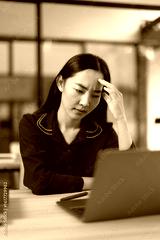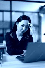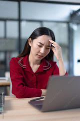 feeling stressed asian businesswoman working on laptop sitting at desk in modern office space for work online.