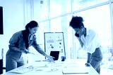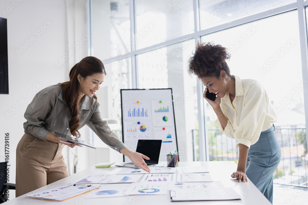 Two business woman working together for analysis data plan business strategies at desk in office, Business discussing and startup concept.