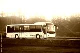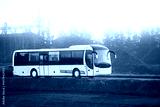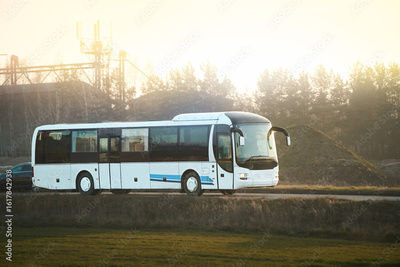 Passenger bus on rural asphalt road