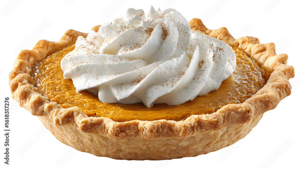 Pumpkin Pie with Whipped Cream, isolated on transparent background
