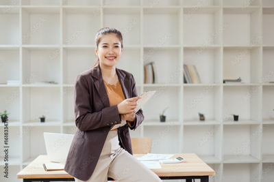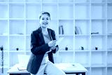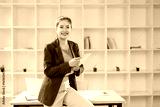 young businesswoman holding a folder standing in office work.