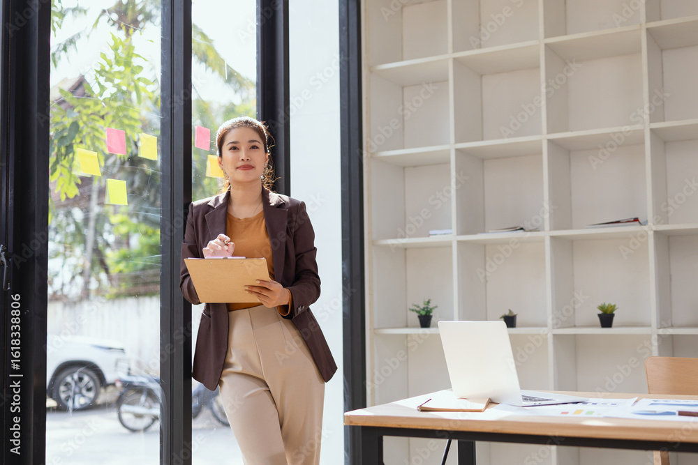young businesswoman holding a folder standing in office work.