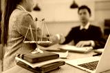 Lawyer Handshake in Business Meeting, Agreement and Partnership, Hammer of Justice,