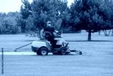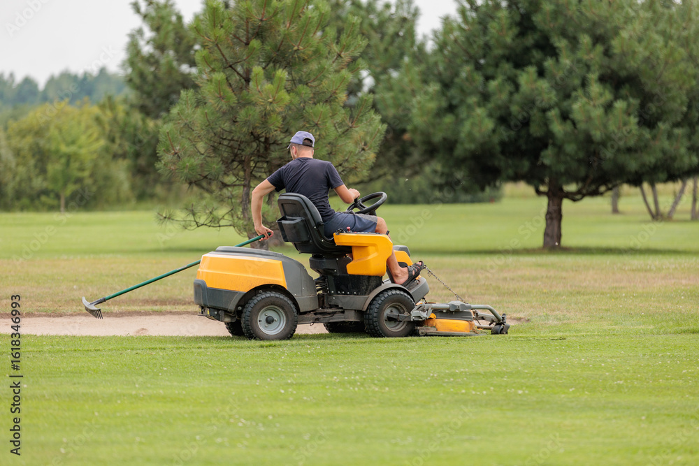 Man driving a lawnmower on the lawn
