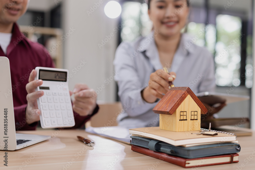 Real estate agents agree to buy a home, Agreement and customer discussing for contract concept.