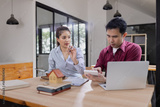 Real estate agents agree to buy a home, Agreement and customer discussing for contract concept.