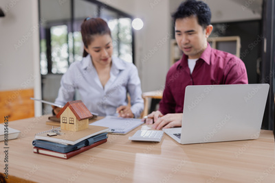 Real estate agents agree to buy a home, Agreement and customer discussing for contract concept.