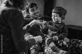 A cheerful family shares quality time together at home, creating warm and joyful memories in a casual and comfortable environment.