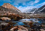 Wallpaper landscape nature of the mountains of Spitzbergen Longyearbyen Svalbard on a polar day with arctic flowers in the summer