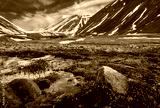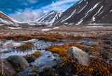 Wallpaper landscape nature of the mountains of Spitzbergen Longyearbyen Svalbard on a polar day with arctic flowers in the summer