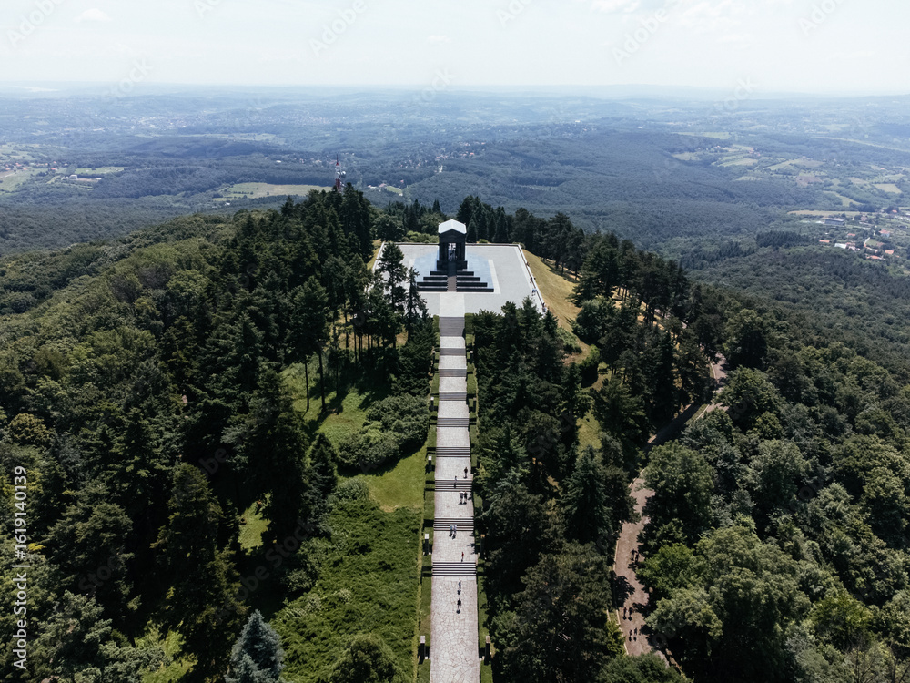 Monument to the unknown hero at Avala mountain, Drone view, Belgrade Serbia.