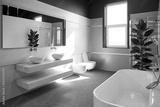 Empty bathroom with modern interior design with sink, toilet, shower and bathtub at home, luxury and domestic appeal, offering a clean space tailored for relaxation and stylish living enjoyment.