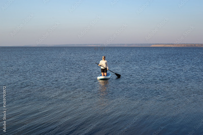 Woman on sup board. A beautiful young woman relaxes on a SUP board. Standup paddleboarding