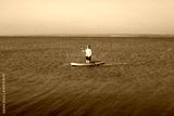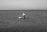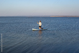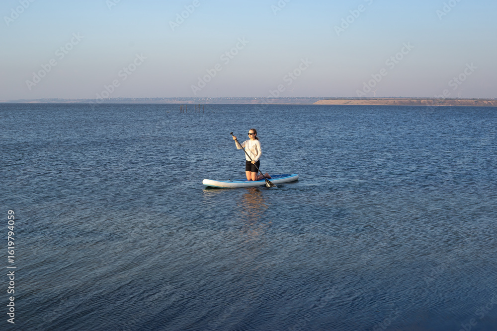 Young woman on stand up paddle board. Stand up paddle boarding on a quiet lake