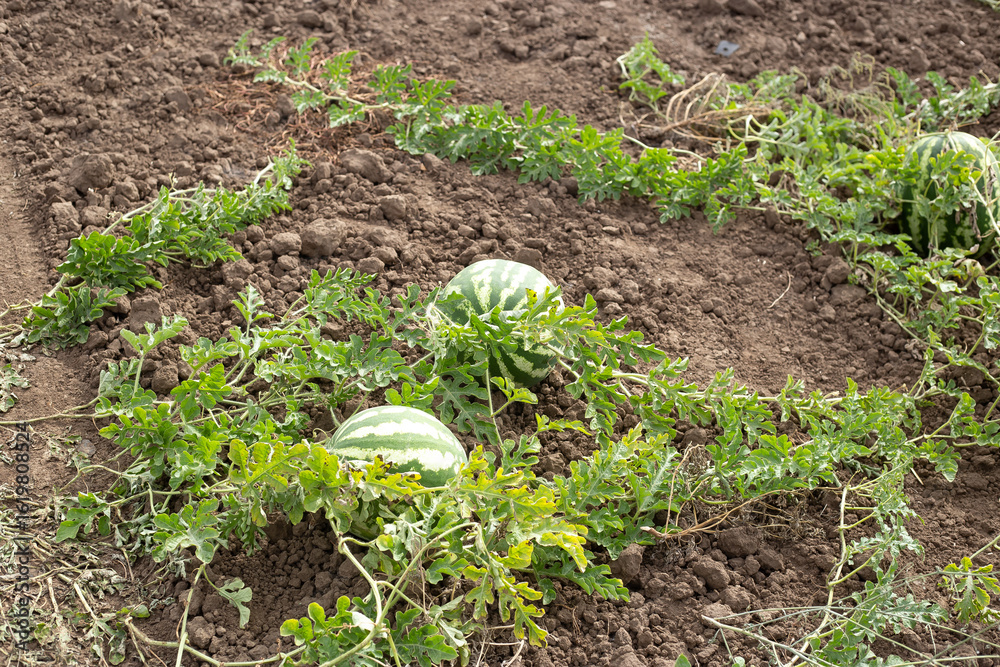 Watermelons growing in the field, ripe watermelons, natural agriculture