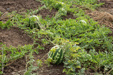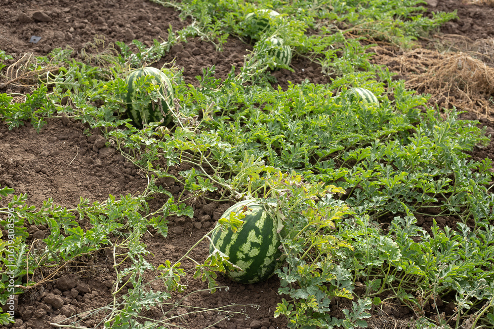 Watermelons growing in the field, ripe watermelons, natural agriculture