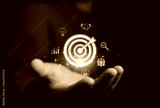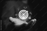 Businessman showing virtual target icon for business purpose, strategic planning for business growth and target customer group. Set business objectives goals, value, growth.