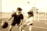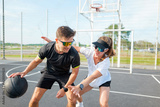 Fun basketball practice between friends on a sunny afternoon outdoors