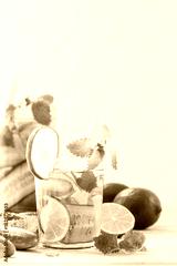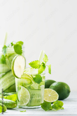 Refreshing drink with cucumber, lime, mint