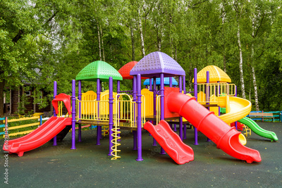 Children colorful playground in summer park