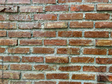 Old red brick wall with rough texture