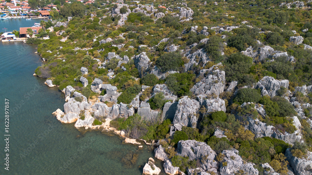 Aerial view with drone. Kalekoy - Simena - Kekova - Turkey.