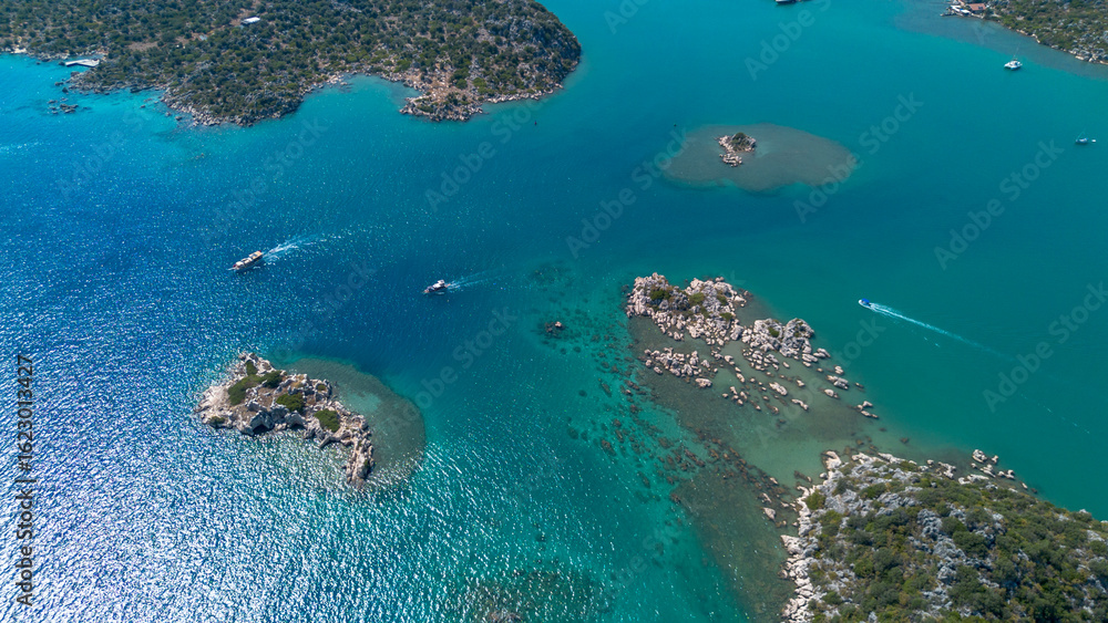 Historic ancient sarcophagi. Simena Castle, Kaleköy (Ucagiz), Kekova - Turkey