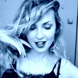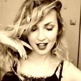 close-up portrait of a young girl hipster beautiful blonde with red lips laughing and posing against the backdrop of the city