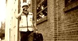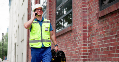 Hispanic Factory Worker Making Business Call