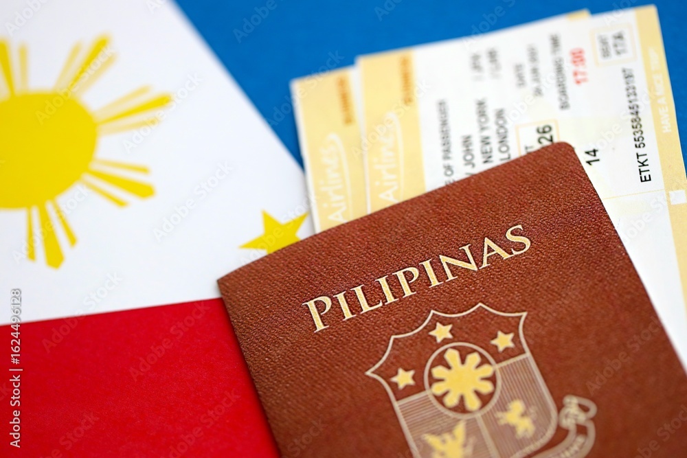 Philippines passport and boarding pass tickets on flag. The concept of travel and vacation
