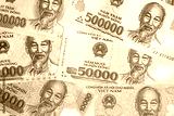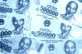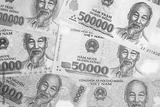 Vietnamese dong currency money bills. The current banknotes lies on table in big amount