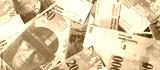 Swiss franc banknotes. The current francs money bills lies on table in big amount