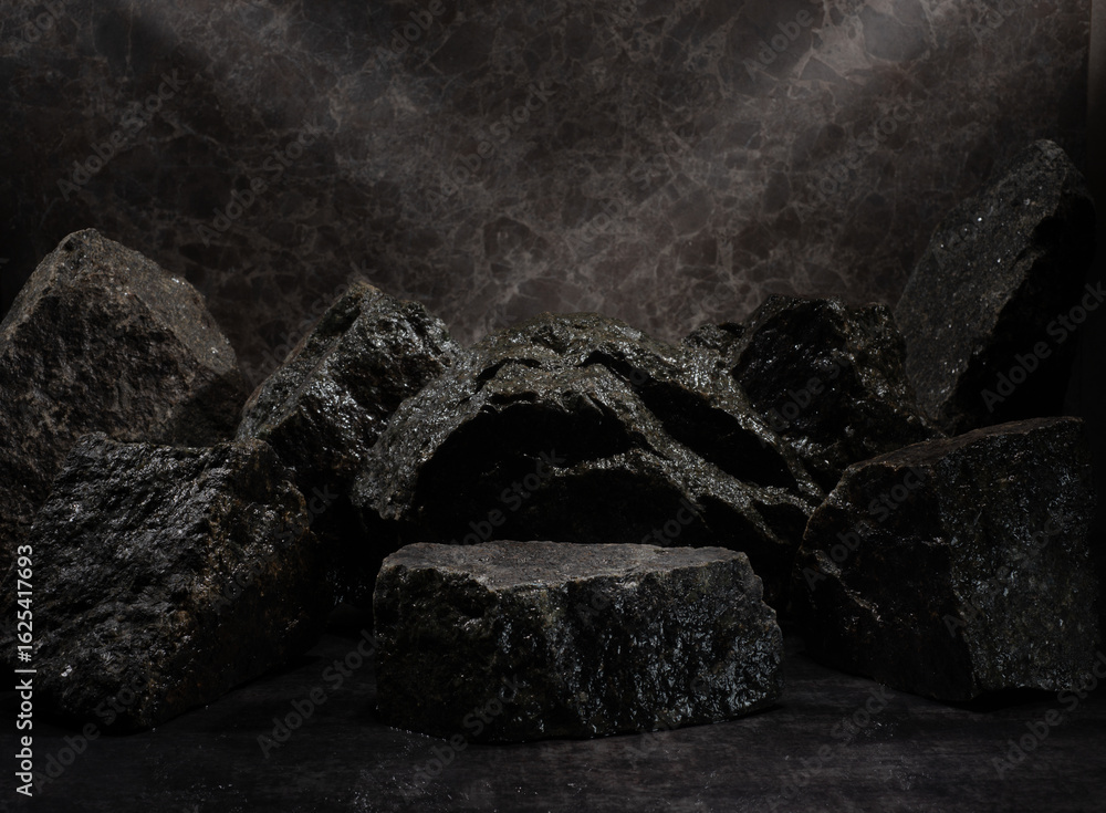 real stones with texture for product presentation podium. podium background with natural stones for advertising products medicine cosmetics jewelry perfumery