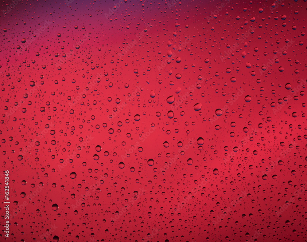 water drops macro on clear surface with vibrant colours in background