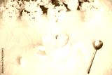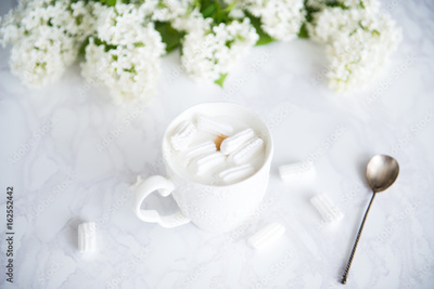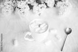 cappuccino with marshmallows white lilac vintage spoon