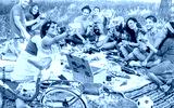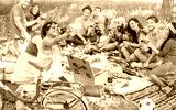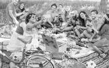 Happy diverse culture friends taking selfie portrait at picnic party outdoor - Young people drinking wine,eating and having fun together - Friendship concept - Focus on afro girl face - Warm filter