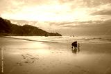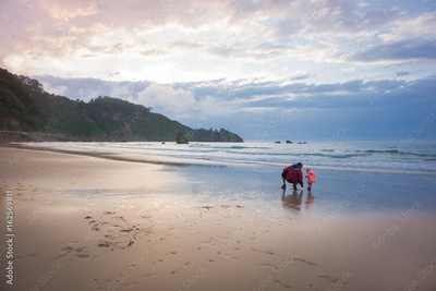 Father shows his daughter the sea: landscape of the ocean - Biscay bay