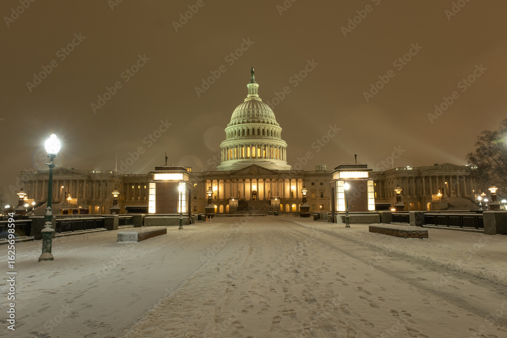 Washington DC Congress Capitol in winter. American Capitol Building in snow. Washington city Capitol. United States Capital. USA landmark. Supreme Court. Washington D.C. Washington city.