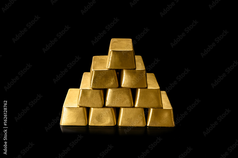 Bank gold bars, national gold reserv holdings concept. Savings and investments, business and finance
