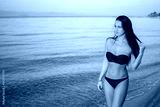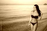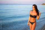 Young woman in bikini walking near the sea.