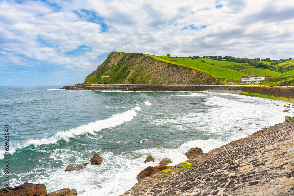 Seascape of the northern coast of Spain, in the town of Zumaia, Basque Country.